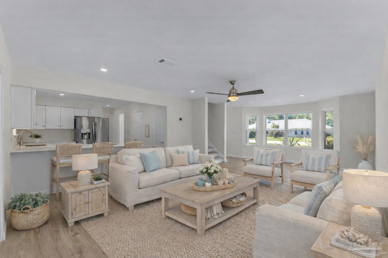 Experience Gulf Breeze waterfront living in this beautifully remodeled 4-bedroom canal-front home, offering direct access to Pensacola Bay. Situated on an oversized 0.34-acre lot, this property features a private backyard oasis where boating, paddle boarding, and fishing are just steps from your door. Inside, natural light fills the open-concept layout, highlighting new flooring, fresh coastal-inspired paint, and a striking wood-burning white stone fireplace-perfect for cozy evenings. The chef's kitchen is the heart of the home, featuring white cabinetry, stainless steel appliances, and a sleek freestanding hood-ideal for entertaining. ...read more